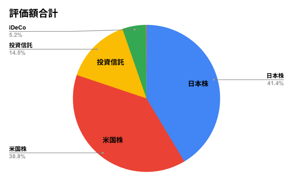 配当金と株主優待欲しさに日本株を買い足すことが増えたので、日本株の割合は増えてきています。