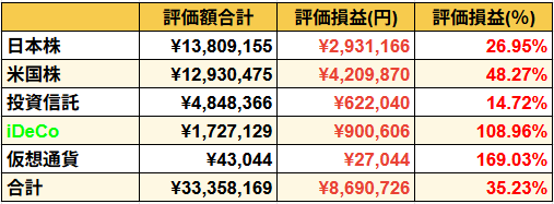 投資信託とiDeCoは、ほとんどが米国株ですので、半分以上は米国株に投資をしています。