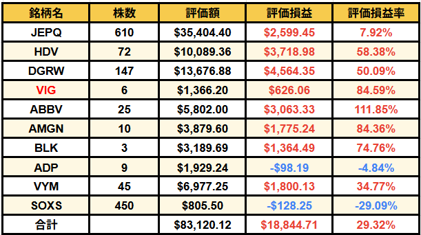 米国株のポートフォリオと運用状況