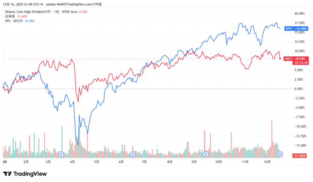 HDVは株価は8%ぐらい上昇していましたが、途中から株価が伸び悩んだ感が満載の結果です。