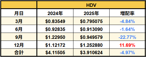 今回は、2025年度のHDVの分配金が発表された結果をまとめました。