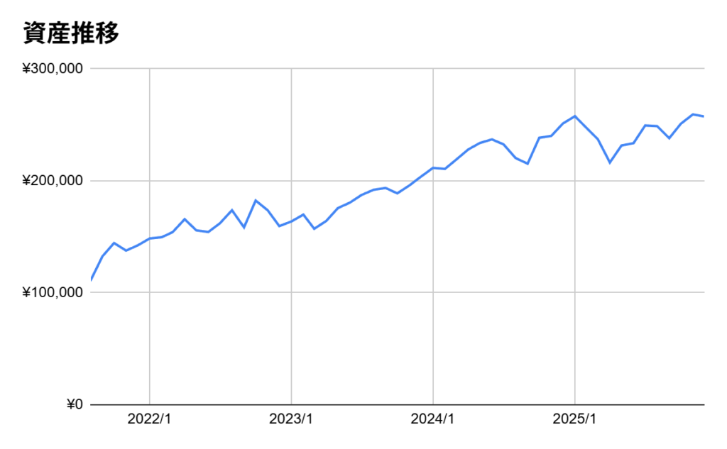 2025年は資産額は増えていますが、資産額増加は伸び悩んだ感じです。