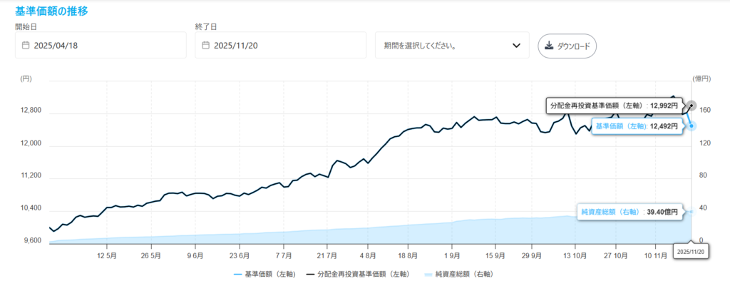 純資産総額39.4億円…投資信託の純資産総額は30億円以下だと繰上償還のリスクがあります。