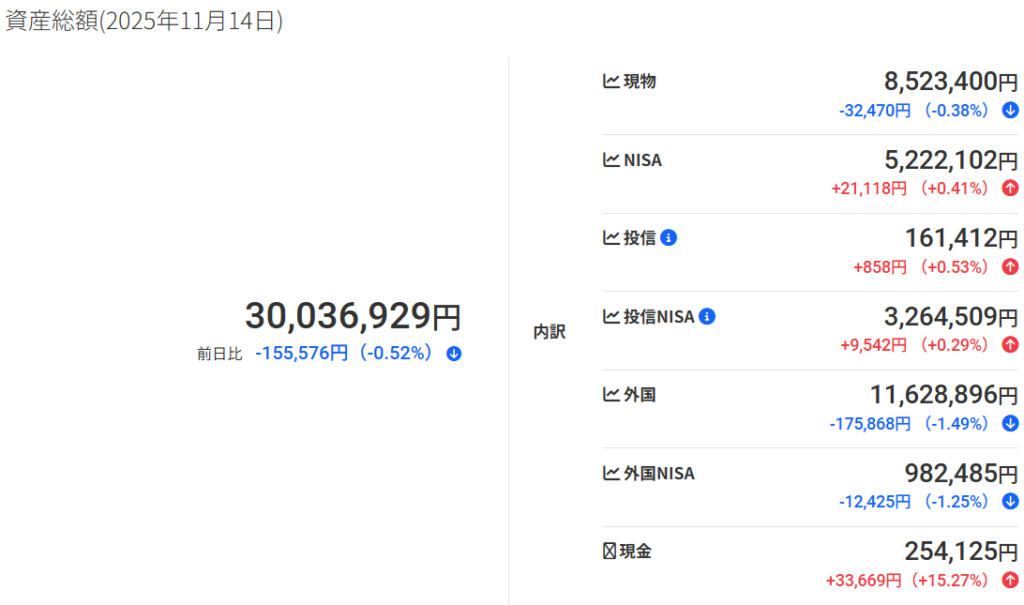 いらんことをたくさんして、大損をしている私でも2022年から2025年の3年で約1,700万円の資産増加…ここ数年の株式相場の好調だったと言えますね。